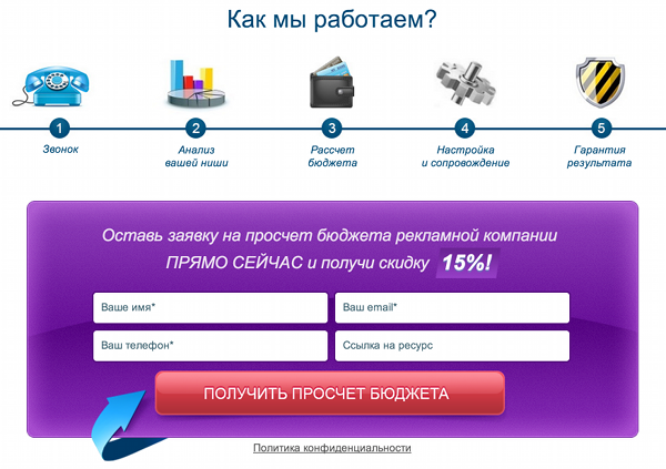 Целевая страница существует не в вакууме, помните? Мы считаем, что 50% коэффициента конверсии составляет собственно лендинг (дизайн, копирайтинг), а остальные 50% — входящий трафик.