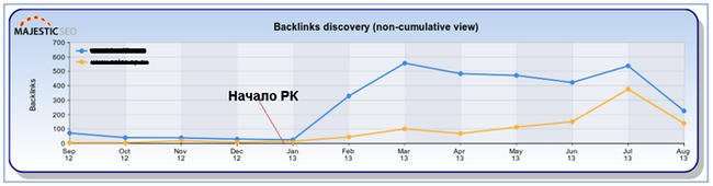 История обратных ссылок двух типичных представителей сайтов из разных групп (majesticseo):